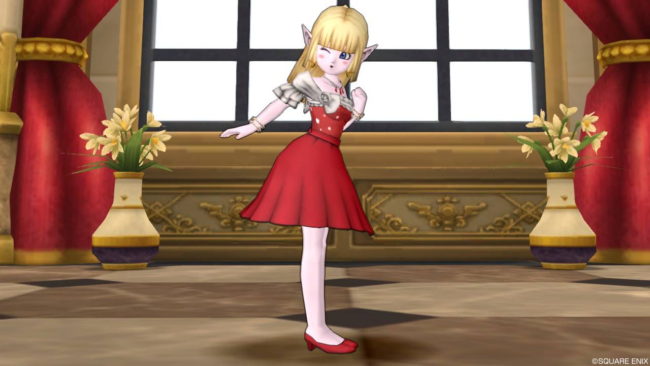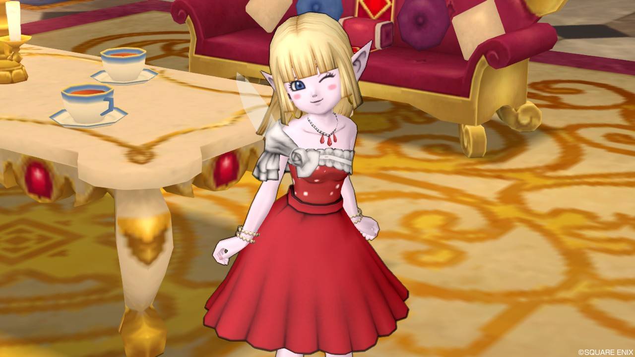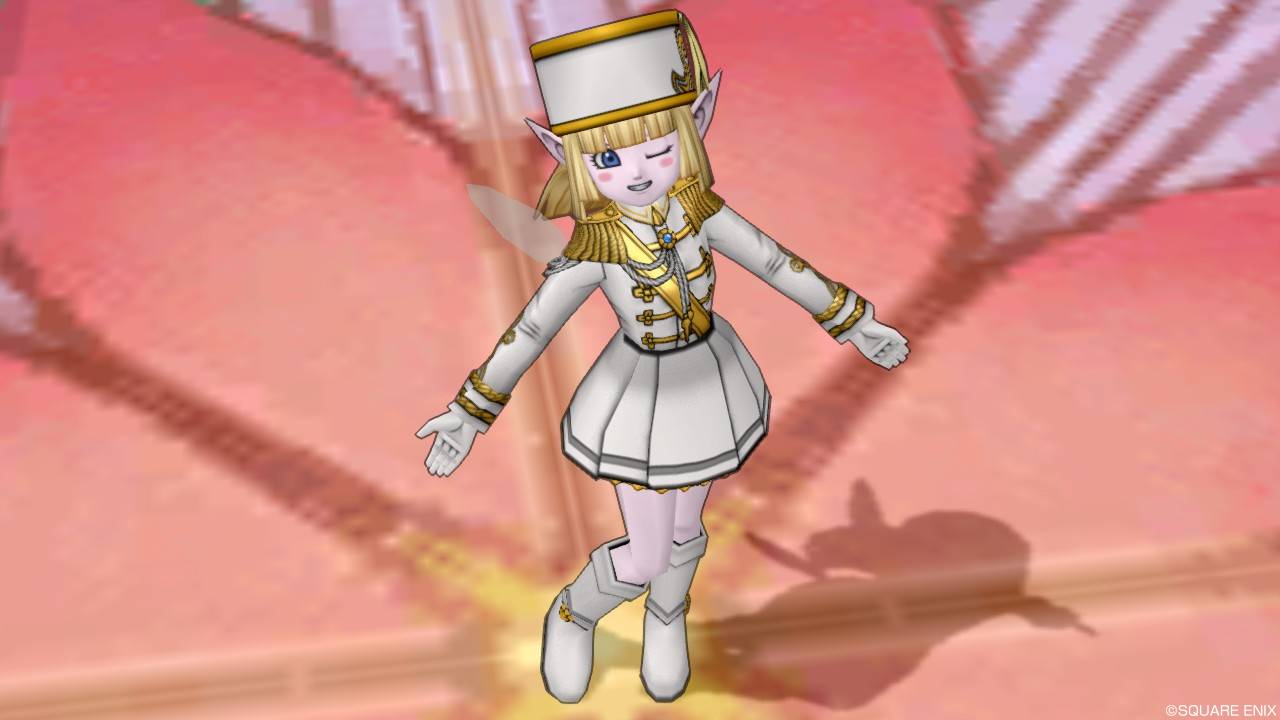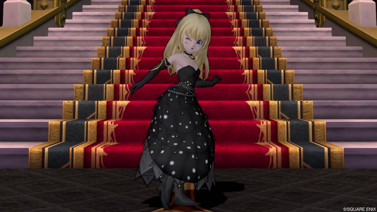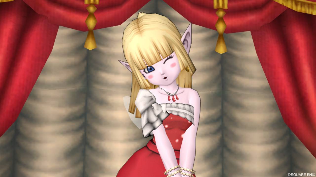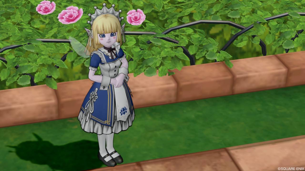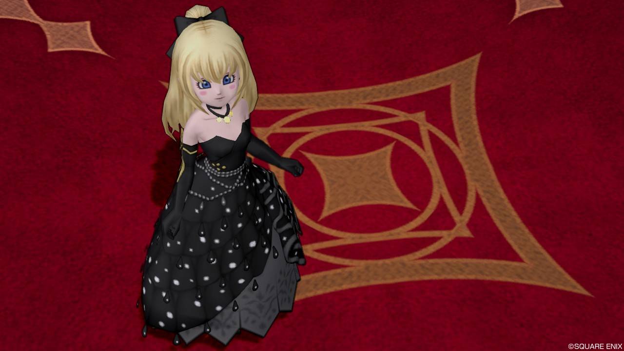 「DQXショップ新商品!クラシカルトップスセットで作成予定の衣装案を先行公開♪」で載せていた姿見案と殆ど変わりませんが、頭装備をルビーの髪飾りから妖精の女王の髪飾りに変更。