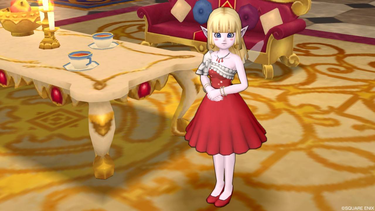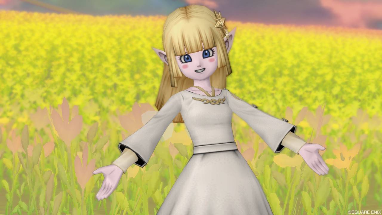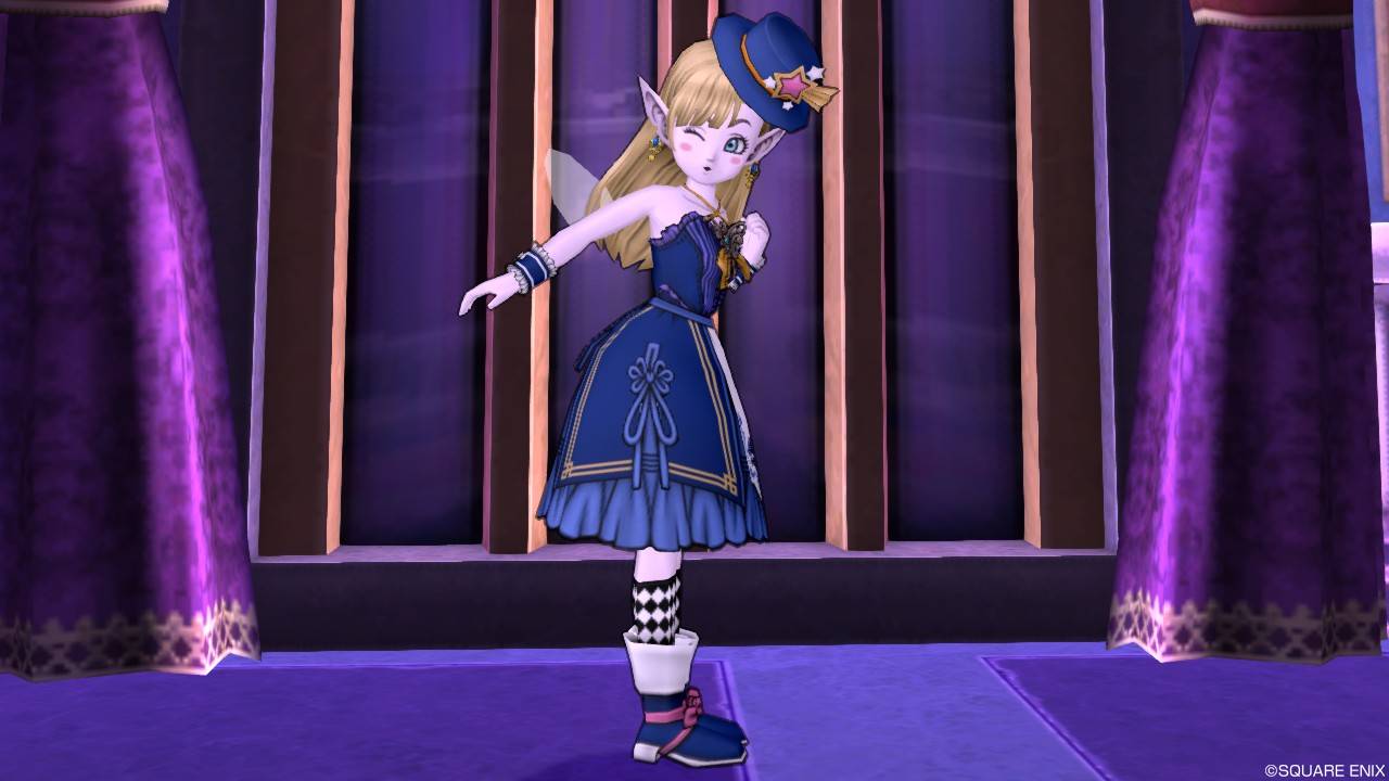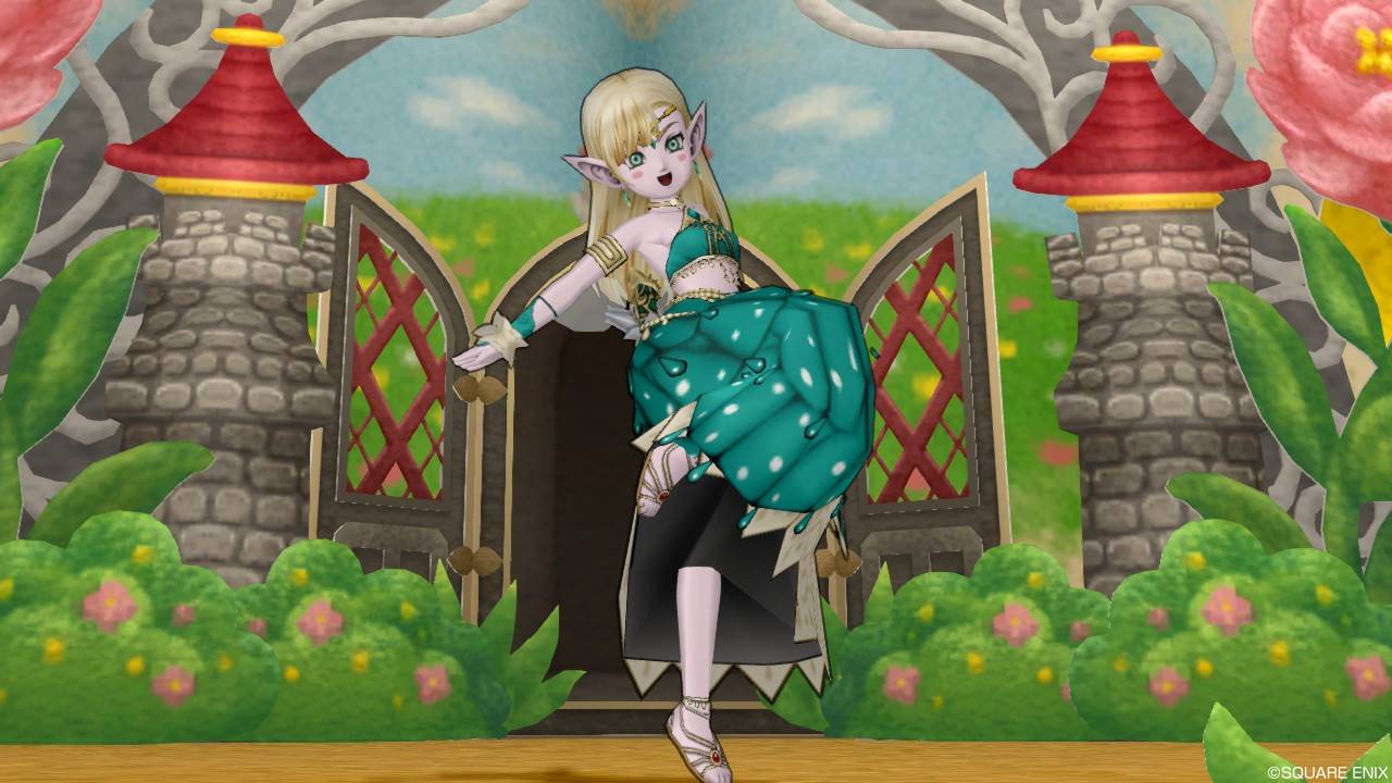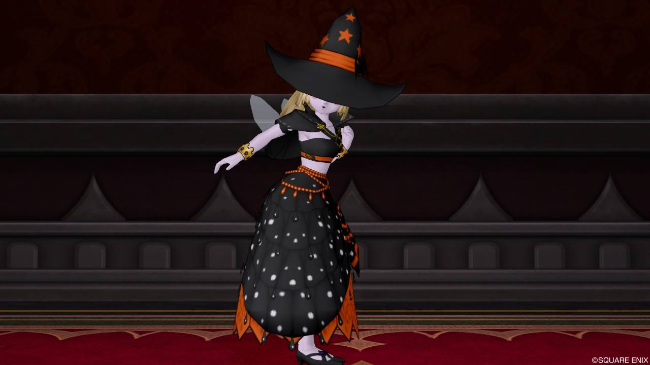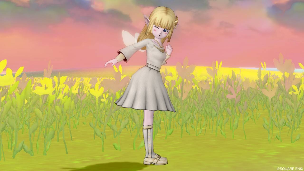 「DQXショップ新商品!クラシカルトップスセットで作成予定の衣装案を先行公開♪」で載せていた姿見案と殆ど変わりませんが、頭装備をルビーの髪飾りから妖精の女王の髪飾りに変更。