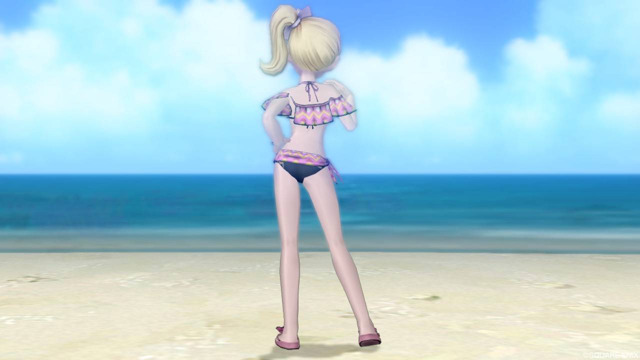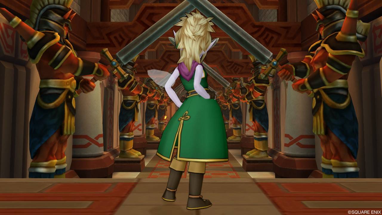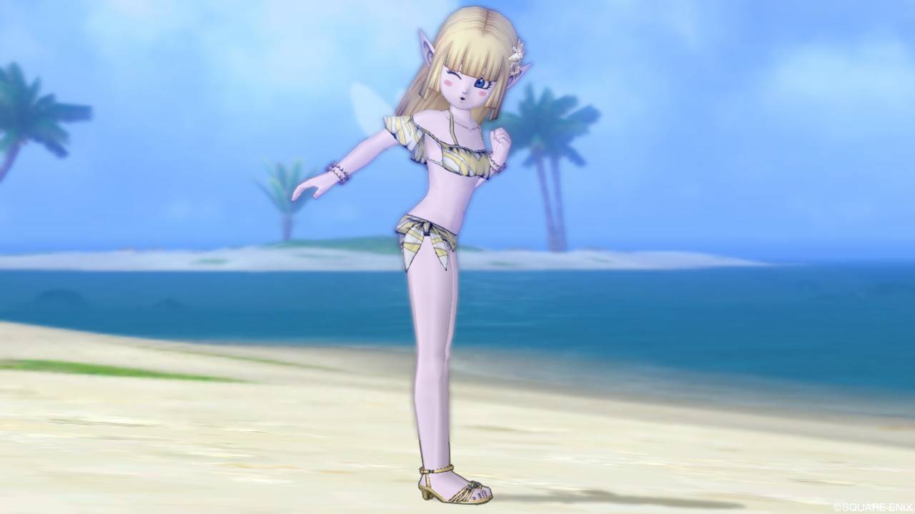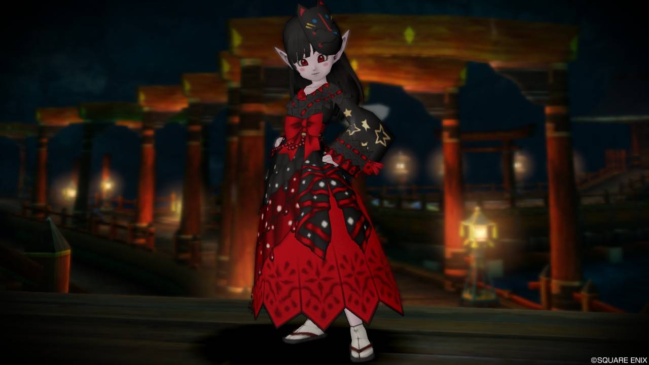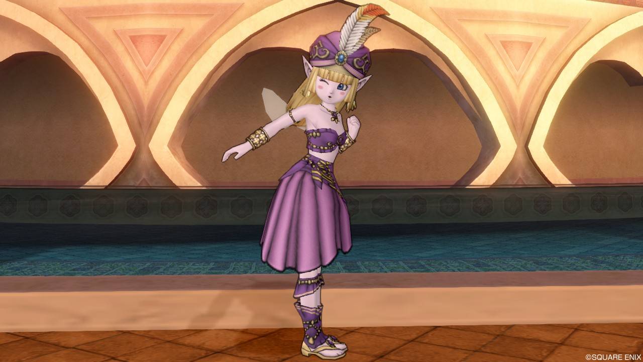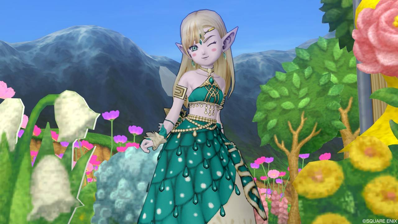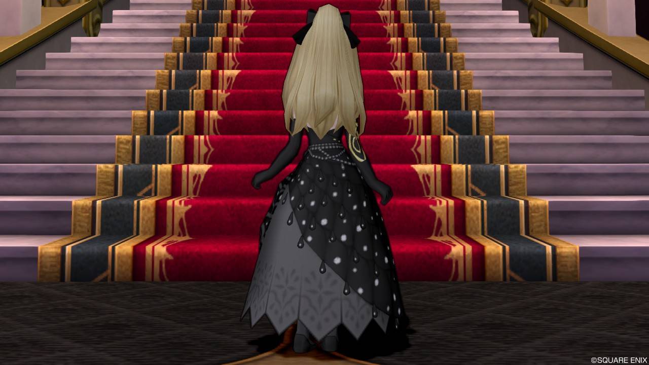 「DQXショップ新商品!クラシカルトップスセットで作成予定の衣装案を先行公開♪」で載せていた姿見案と殆ど変わりませんが、頭装備をルビーの髪飾りから妖精の女王の髪飾りに変更。
