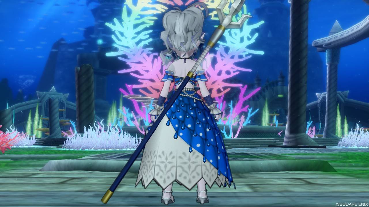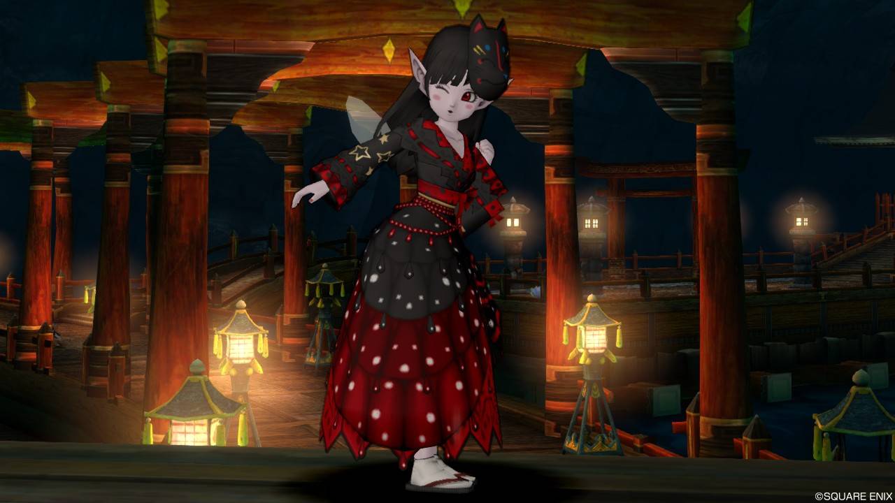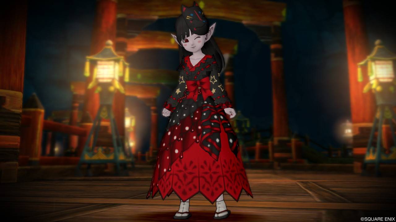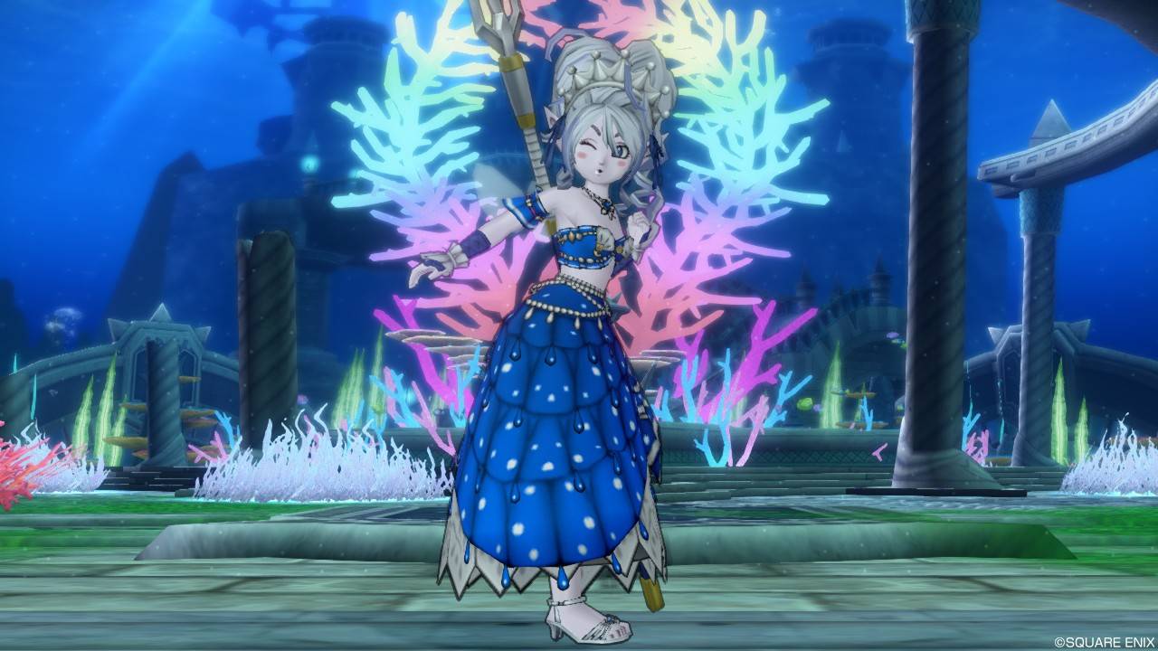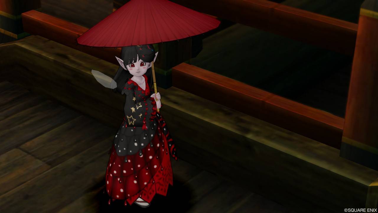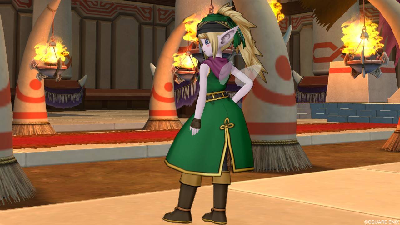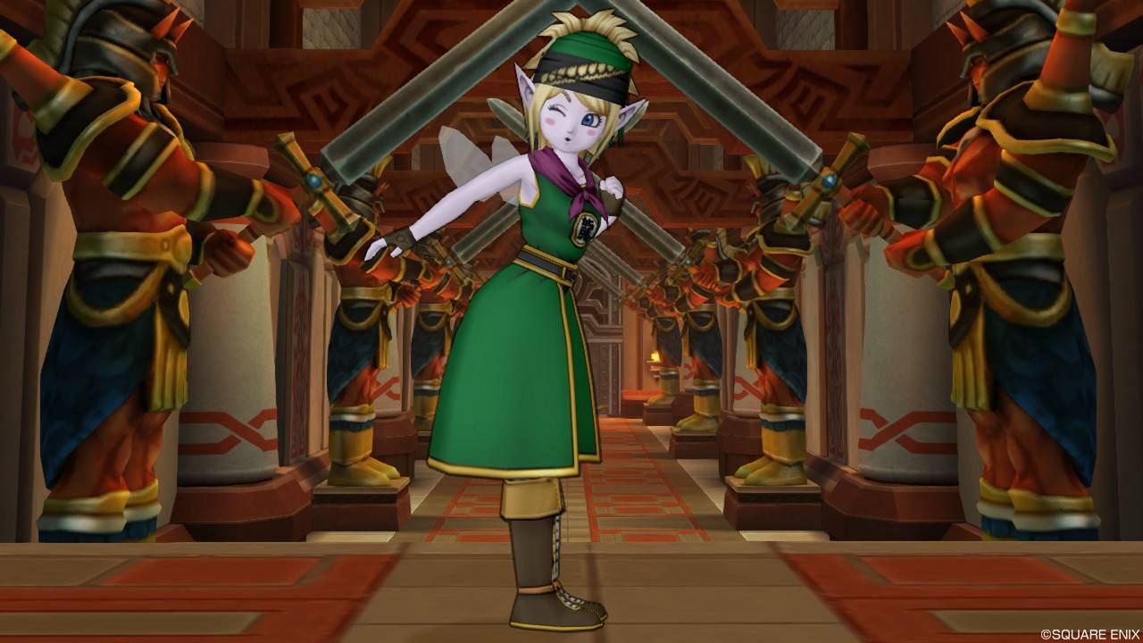 「DQXショップ新商品!クラシカルトップスセットで作成予定の衣装案を先行公開♪」で載せていた姿見案と殆ど変わりませんが、頭装備をルビーの髪飾りから妖精の女王の髪飾りに変更。